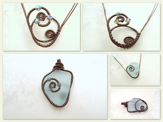 The materials: sea glass from the Black sea shore and wire - 20 Ga for the base and 26 Ga for weaving. The inspiration: my partner in the Bead Peeps Swap'n'Hop Shalini Austin, who made wonders with a piece of sea glass I sent her, as you can see for yourself!