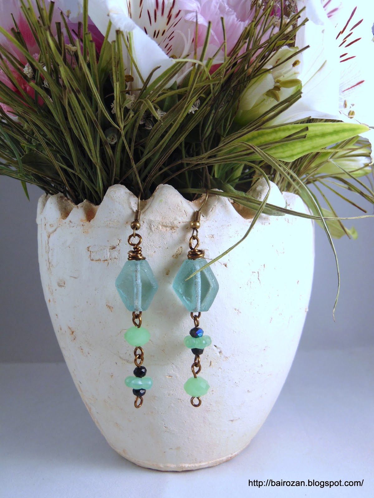 Направих и два чифта семпли обици с керамични бухалчета и такива от чешко стъкло.