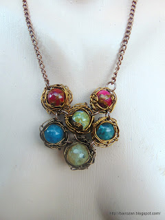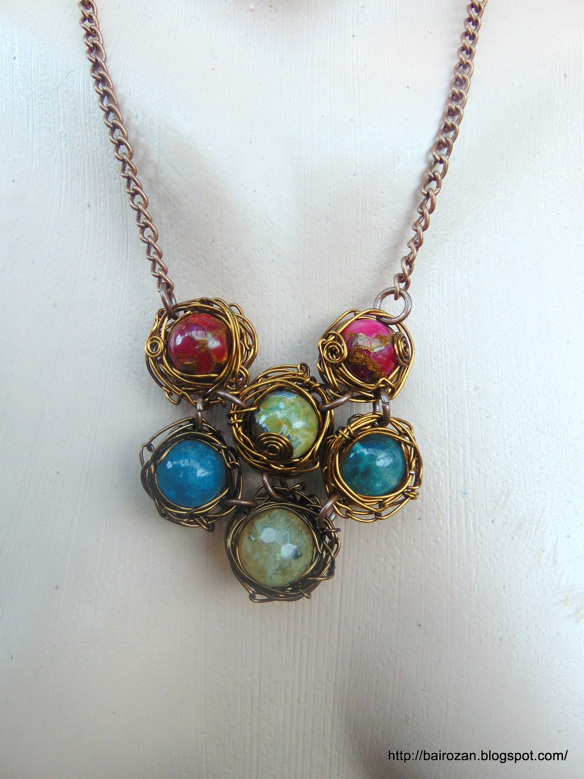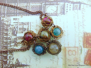 Имам притеснително голяма колекция от единични остатъчни мъниста, вкл. някои с малки дефекти, като драскотини и неравности. Благодарение на предизвикателството на Мерибет от A Few Words from Within the Pines, намерих добър начин да ги оползотворя. Помните ли урочето ми за увитите с тел мъниста? Направих страхотно колие, ама наистина!